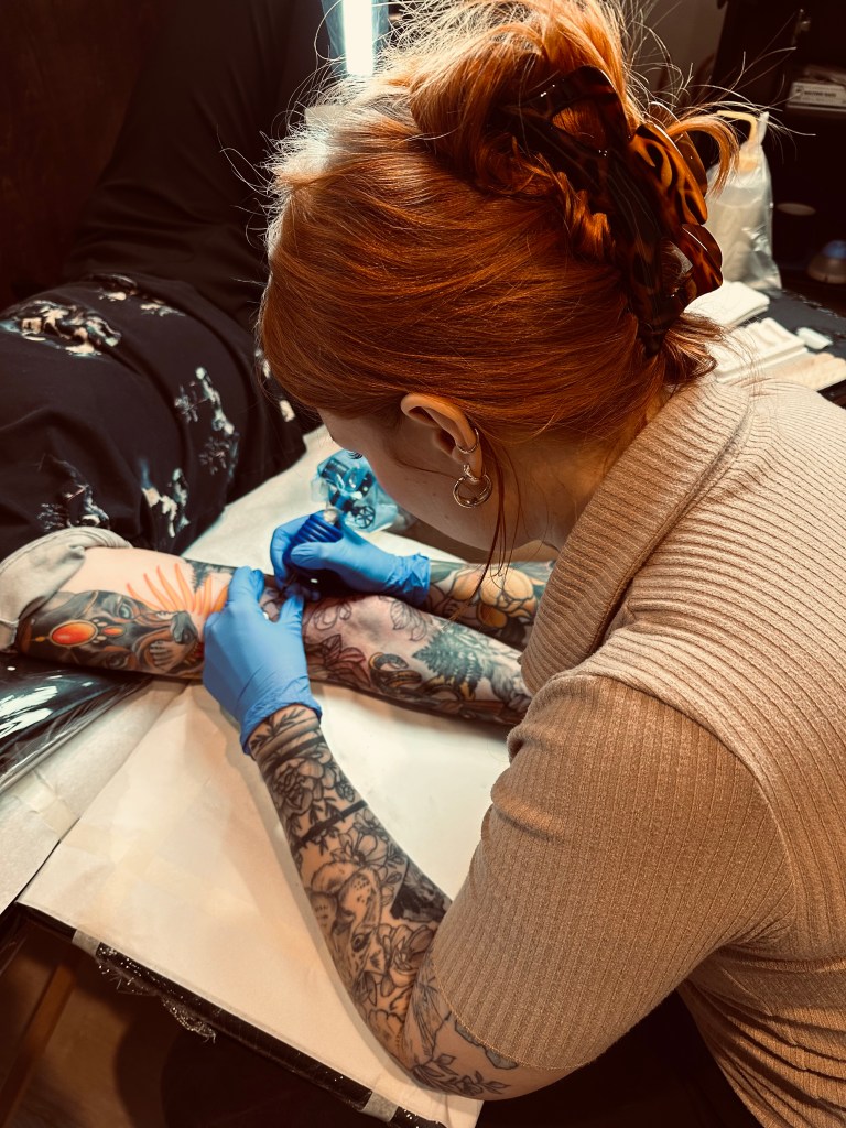 Heipsun! Olen Ekaterina ”Katja” Pääsky ja aloitin tatuointiurani vuonna 2020, Tampereella. Heti harjoitteluvaiheessa tiesin Neotraditionalin olevan tyylisuuntani ja olen harjoittanut sitä nyt jo 4 vuotta. Minun suosikki tatuointiaiheet ovat luontoaiheiset kokonaisuudet, niin pienet kuin suuret, naishahmot sekä erityisesti lemmikkien muotokuvat. Muunkin aiheiset kuvat ovat aina tervetulleita! Instagramista (@paasky_tattoo) löytyy runsaasti kivoja vapaita malleja, joita voi varata, jos ei ole omaa ideaa jota haluaisi toteuttaa. Ota rohkeasti yhteyttä niin tehdään sulle oma ainutlaatuinen tatuointi ❤️